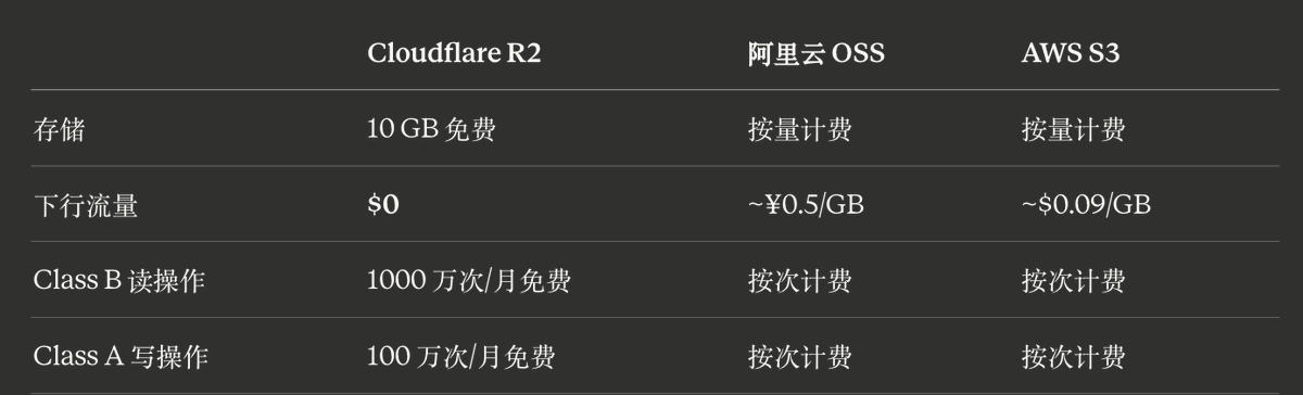 For personal blogs, note-taking with images, and similar scales, R2's free quota is basically impossible to exhaust.
