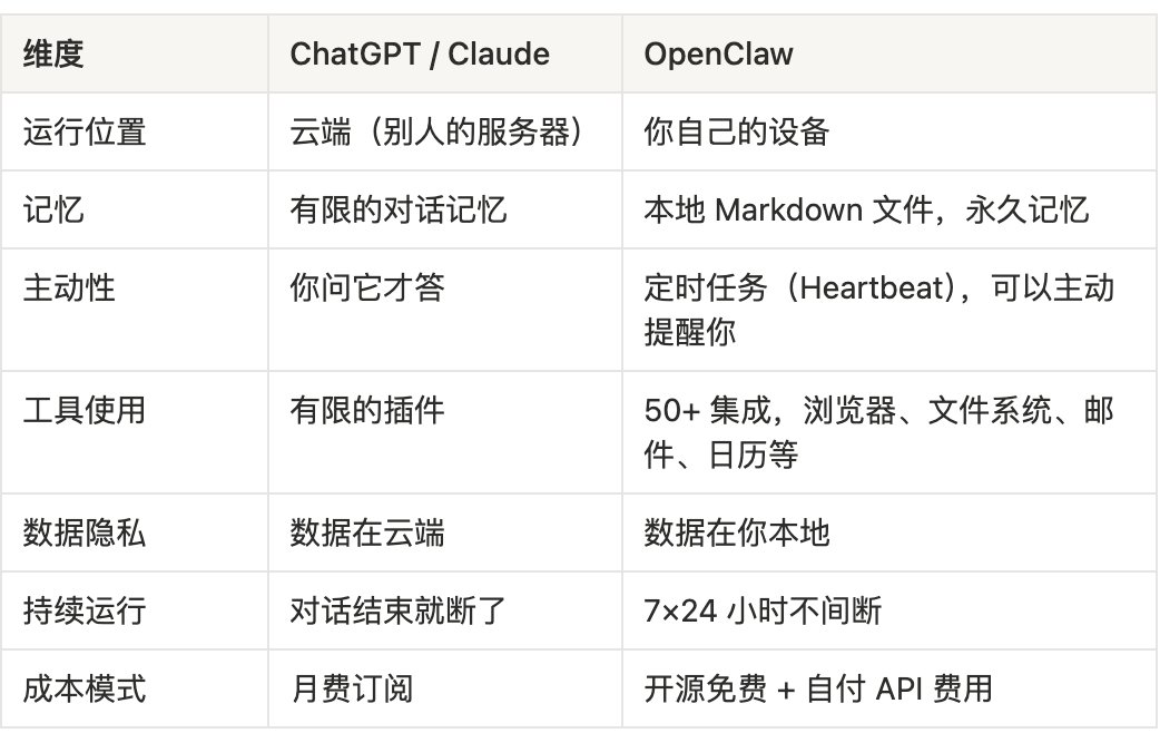 OpenClaw = An AI employee that runs 24/7 on your own device, communicates with you via WhatsApp / Telegram / iMessage, and can help you send emails, manage schedules, write code, browse the web, manage files, and even help you negotiate car prices.