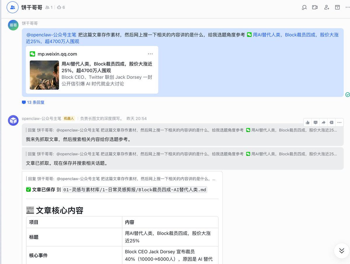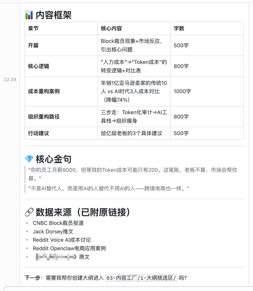 With this content factory in place, when you're walking down the street and see a high-quality industry report, you can casually copy the link and send it to the Agent on your phone.
