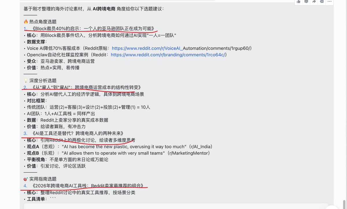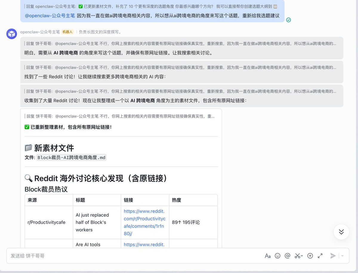 Sitting in front of your computer at night, you just need to send one instruction to start processing today's collected inspirations. The Agent will automatically fetch materials to suggest topic angles for you.