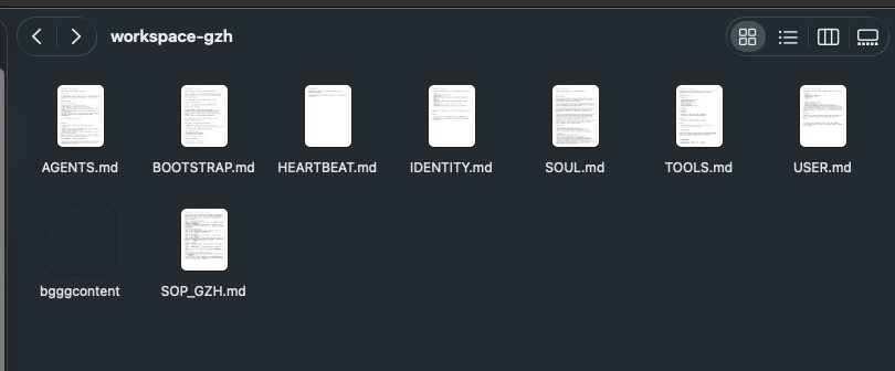 The effect is like this. You can see that the agent workspace folders in OpenClaw each have a