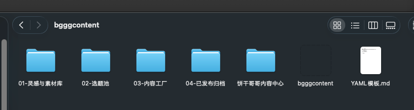 01-灵感与素材库 (Inspiration & Material Library): Divided into daily inspiration clippings and viral material snippets. High-quality long articles you come across daily go directly into the former. Highly impactful quotes and logical frameworks are extracted and stored in the latter.