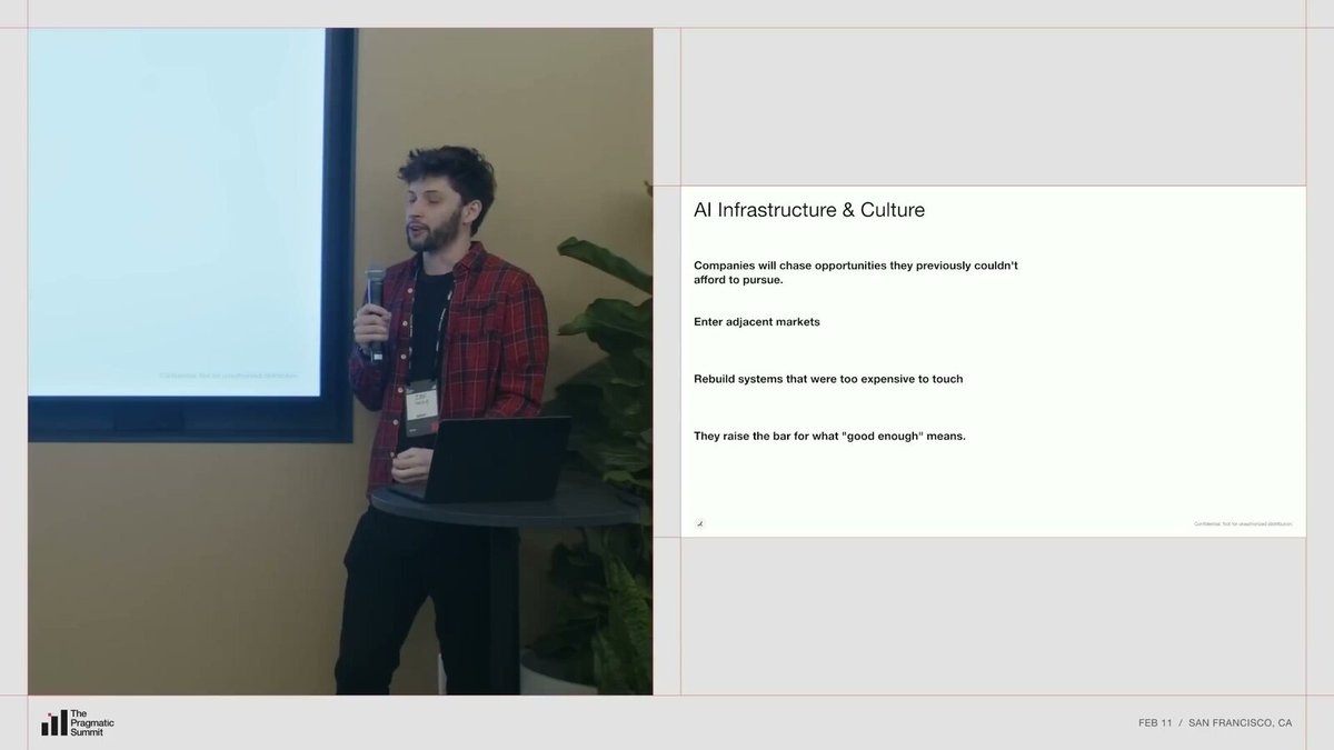 他引用了 Ramp 内部的一句话:“Jobs not finished”(活儿没干完)。软件永远处于“没完成”的状态。当多出来的产能不再被低层级的琐事占据,四件事会发生:公司会追逐之前负担不起的机会,会进入相邻市场为客户拼接更多价值,会重建那些过去成本太高不敢碰的旧系统,会提高“够好”的标准。