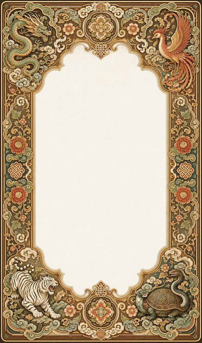 卡牌边框设计,五行+神兽为主题,中国传统纹样风格