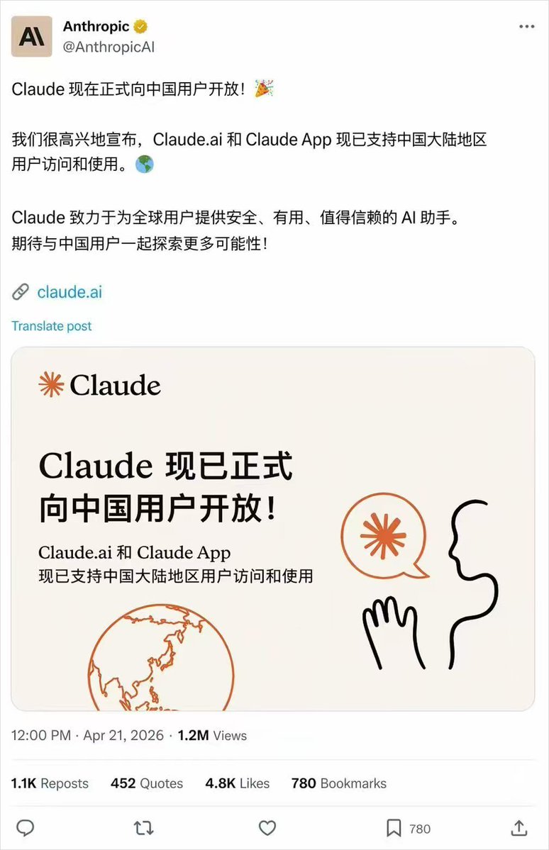 我们很高兴地宣布,Claude.ai和ClaudeApp现已支持中国大陆地区用户访问和使用。