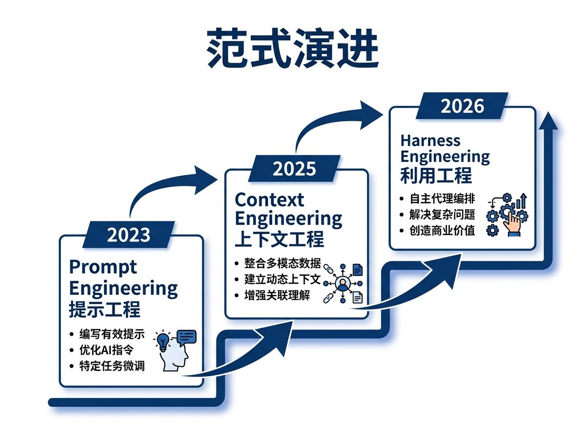 从 Prompt Engineering 到 Context Engineering 再到 Harness Engineering,每一次范式转移的背后都是 AI 能力的一次跳跃